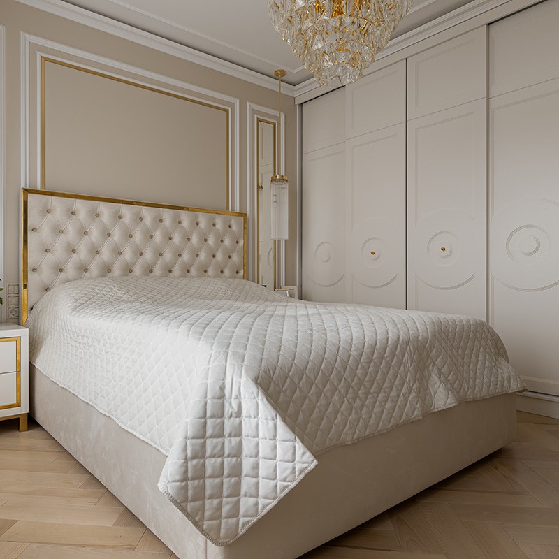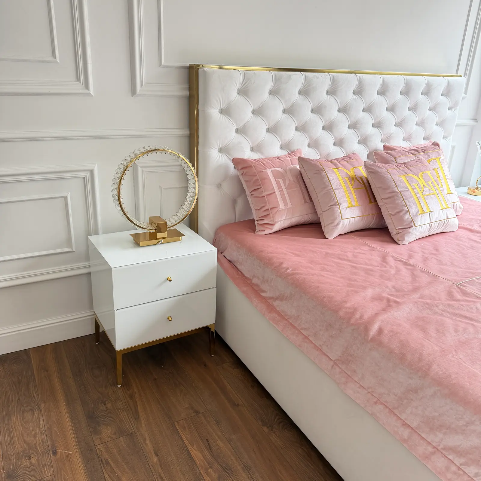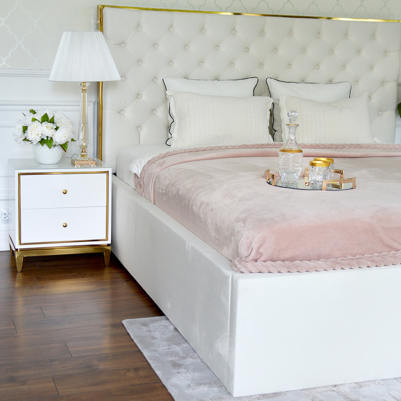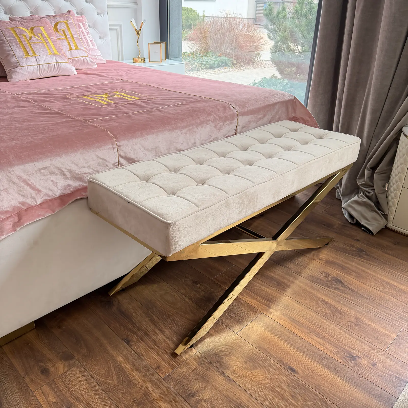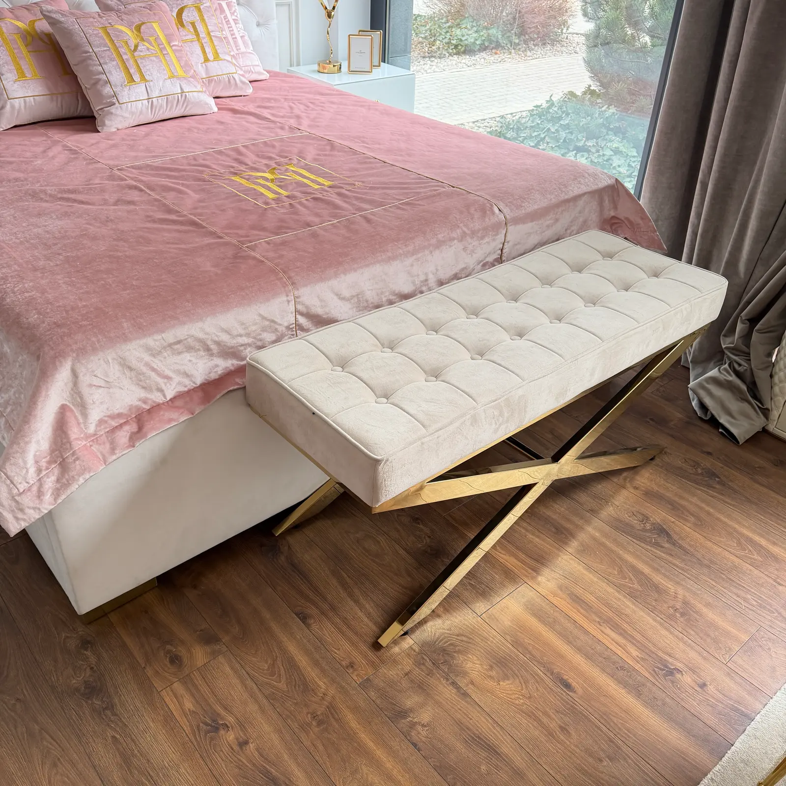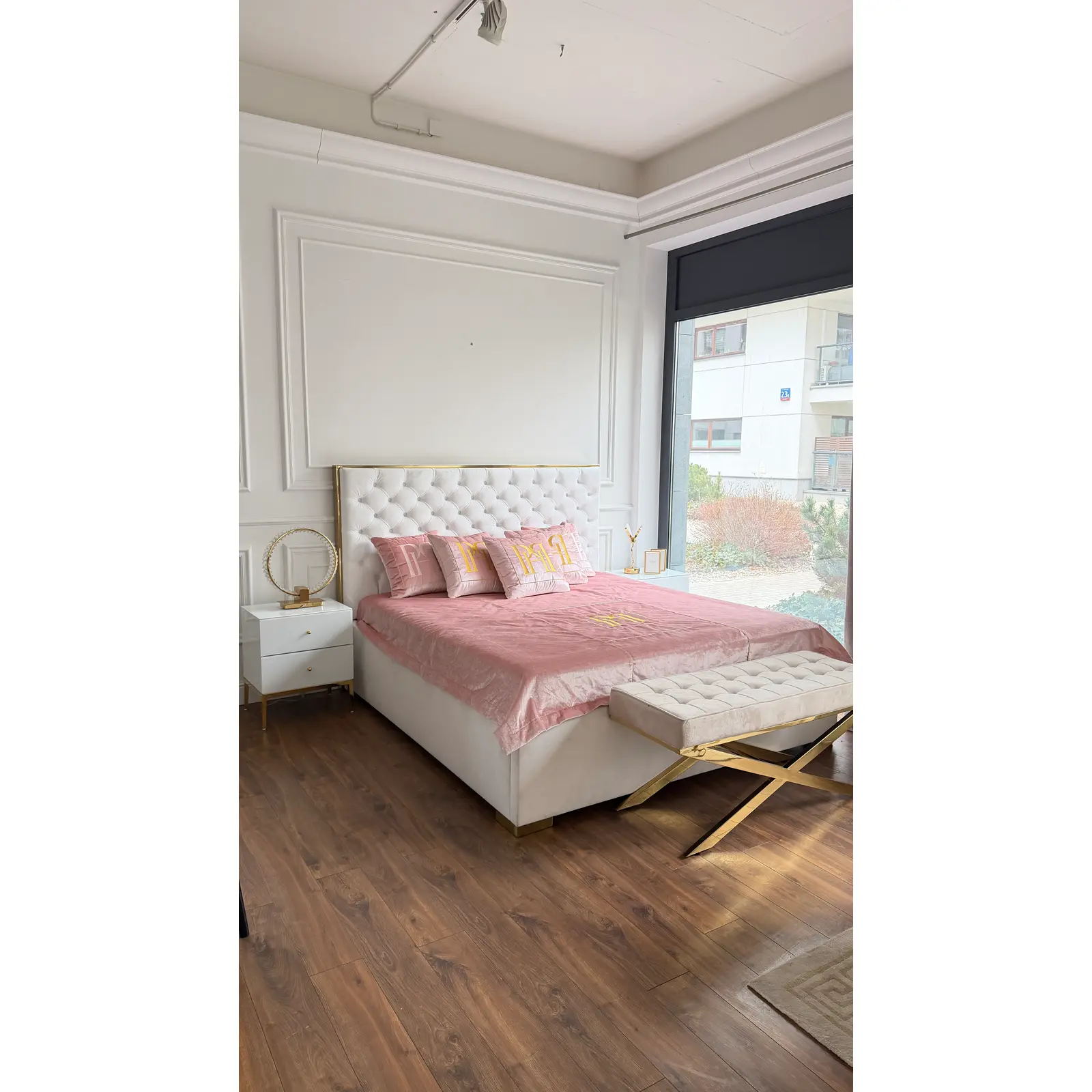 Upholstered glamour bed in gold color in beige fabric Sweet Velvet 3
