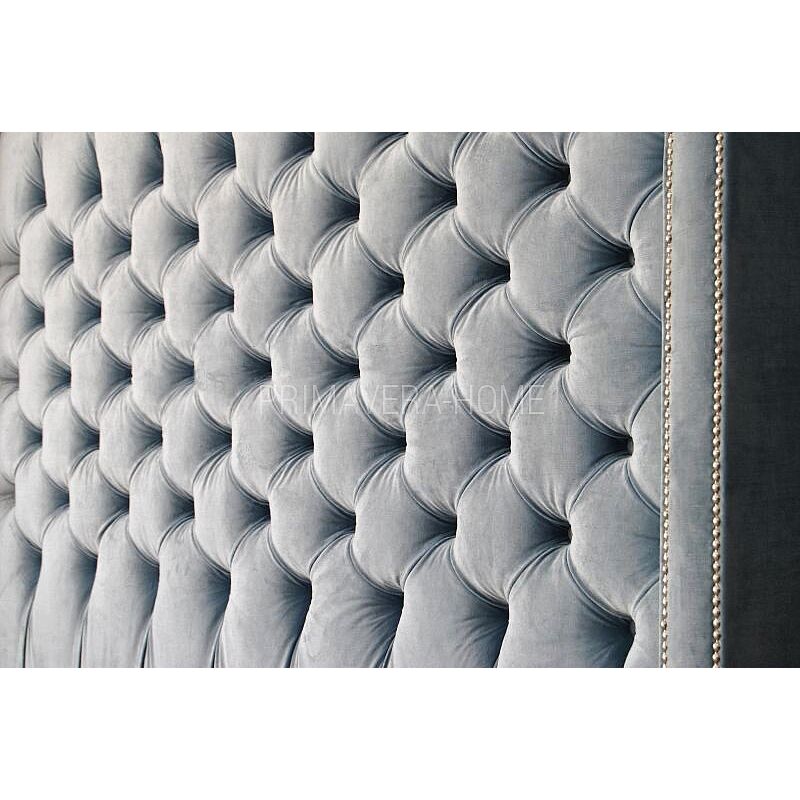 The tasteful glamour bed EUFORIA is a wonderful piece of furniture, matching the bedroom, decorated in a chic New York style. Its construction is made of beech wood and supplemented with velour fabric upholstery. The biggest decoration of the bed is its high head, decorated with classic quilting and upholstery nail finishing. It is a product made by hand, on special order, with the highest attention to detail. It fits into interiors with elegant character, maintained in subdued colors.