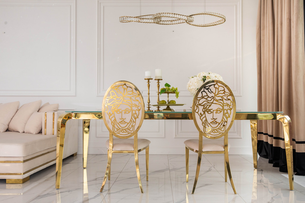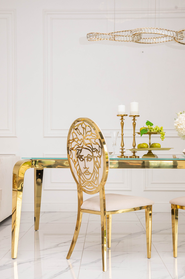 If you want to give your dining room a unique character and create an atmosphere of luxury, the MEDUSA chair is an excellent choice. The combination of beige and gold makes it the perfect complement to both classic and modern interiors.