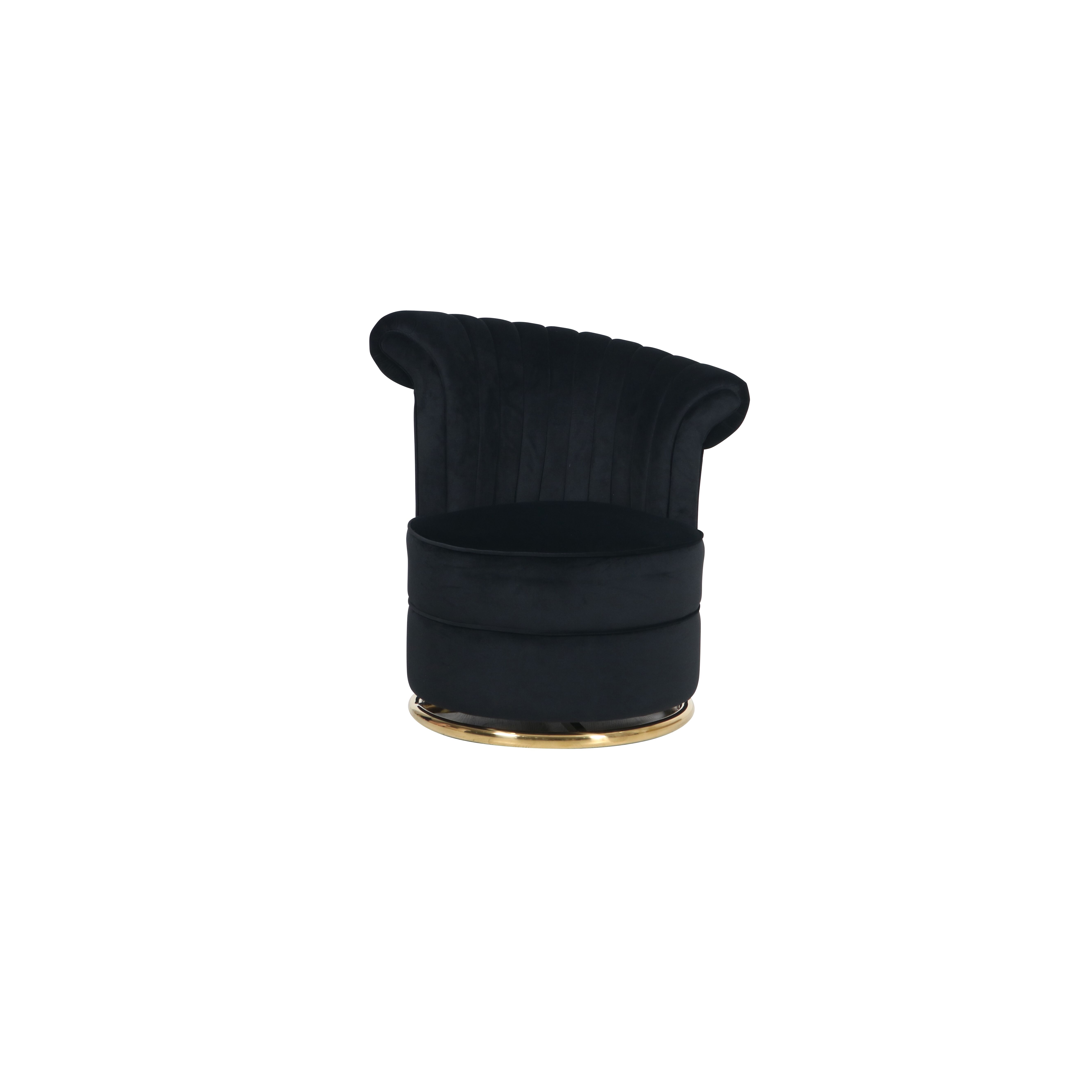 Interesting in its form, and at the same time elegant glamorous armchair FLOWER, is a piece of furniture with an extraordinary design. Its round base is made of stainless steel in the color of brushed gold. On it rests a high, soft, round seat with a fancy backrest. The upholstery of the armchair is made of velvet fabric in the color of black. This amazing armchair with an unusual shape will fit both classic and modern furniture.