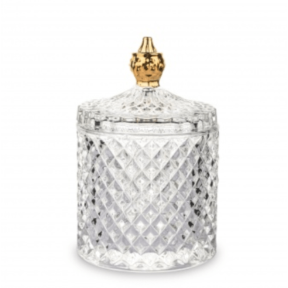 Smoked gold decorative glass container, perfect for storing accessories, jewelry or cosmetics on the dressing table. Lockable, ensuring safe storage of valuable items. Its elegant design makes it a perfect decoration for any space.