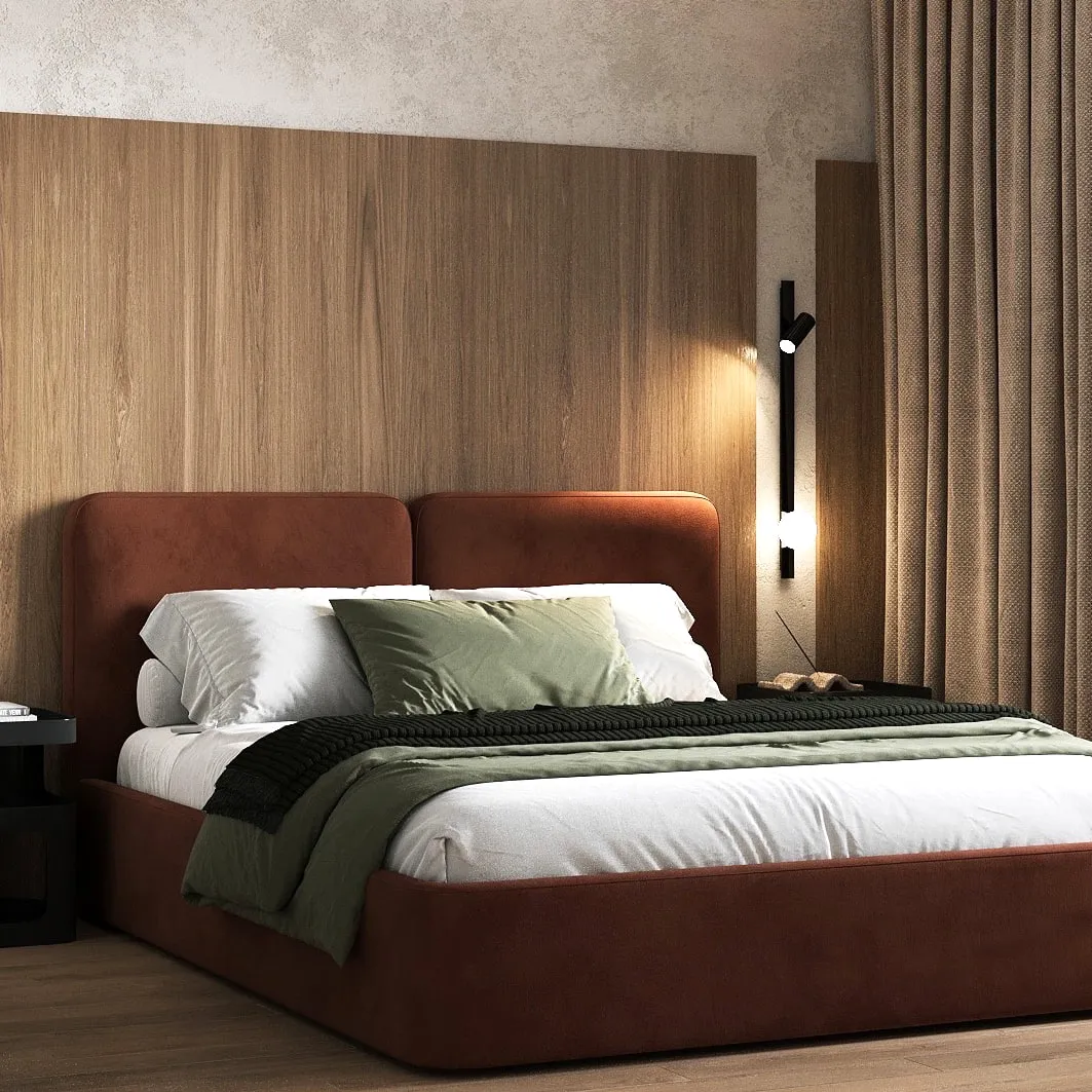 The SIENNA bed combines aesthetics and functionality, creating a unique space for relaxation. It's the perfect choice for those looking for a stylish and comfortable bed for their bedroom.
