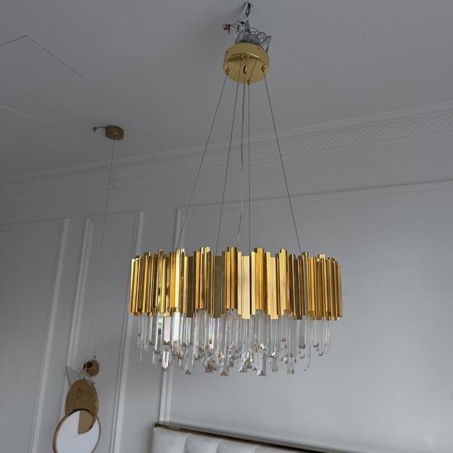 The EMPIRE GOLD gold chandelier is an impressive interior addition that will attract the attention of every person visiting a given room. It not only brightly illuminates the space, but also shimmers beautifully in the daylight. The combination of gold and the shine of crystals exudes warmth and eye-pleasant reflections. The chandelier is made of stainless steel and its maximum weight is 30 kg. It can be hung at a height of 50 to 200 cm. Therefore, it will work great in both rooms with very high and low ceilings. The New York EMPIRE GOLD lamp is easy to keep clean, so it can continuously shine with a dazzling glow.