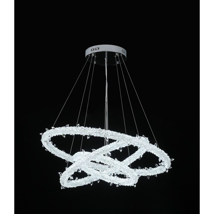 The ICE XL LED crystal ceiling chandelier is modern lighting that adds elegance and prestige to any interior. It is made of high-quality crystals that beautifully reflect light, creating spectacular effects in the room. The ICE XL chandelier has the form of a round, silver metal frame, decorated with numerous crystals. Their arrangement resembles a ring, which gives the lamp a unique character and a unique look. The crystals are delicately mounted on the frame, which makes the whole thing look very light and subtle. In addition to its aesthetics, the ICE XL chandelier is equipped with energy-saving LEDs that generate strong but economical light. Thanks to this, the chandelier not only beautifully illuminates the room, but also helps to reduce energy consumption. Thanks to its modern design and the combination of classic crystal with contemporary LED lighting, the ICE XL chandelier fits perfectly into various interior design styles. It can be a perfect addition to the living room, dining room, bedroom or hall, adding a chic and luxurious character. To sum up, the ICE XL LED crystal ceiling chandelier in the shape of a round ring is a fashionable, elegant and modern lighting element that will add unique shine to any room. Its silver color and delicately embedded crystals create a unique look that attracts attention and gives the interior sophistication.