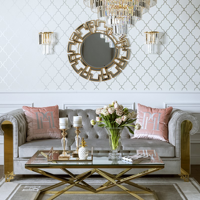 The glamour style in its full glory can be admired only when exclusive lighting, such as crystal wall lamp, appears in the surrounding of unusual furniture and other accessories. One of the most characteristic features of this style are the materials from which the interior elements are made. At Primavera Home you will find products that not only delight with their aesthetics, but also fulfil their practical function. The modern MADONNA armchair or the CHICAGO GOLD mirror console are among the pieces of furniture that perfectly match the wall lighting. Thanks to the composition of carefully selected furniture and accessories, you will create in your home an interior in the glamour style you have always dreamed of.
