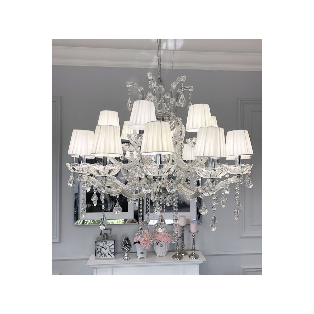 The MARIA TERESA glamor lamp is a luxurious chandelier made in a classic New York style. It has beautiful lampshades that add elegance and charm to it. It will work perfectly in the dining room, adding a unique character to it. The silver color gives it additional shine and elegance. It is an ideal choice for people who value luxurious interior design and pay attention to every detail.