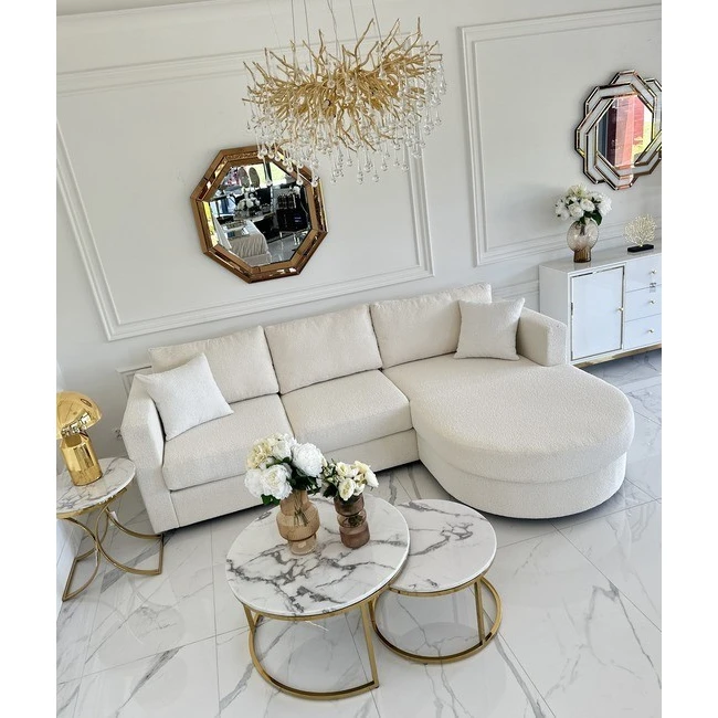 The luxurious, glamorous PARIS corner sofa is the perfect complement to your living room. Its elegant design and rounded shapes will give the interior a unique character.