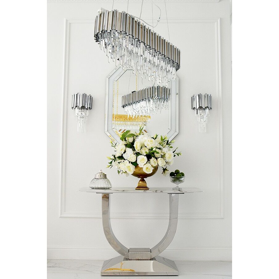 The RARE SILVER glamorous geometric mirror in a silver frame, dimensions 80x100 cm, is an elegant and stylish mirror that will be perfect as a decorative element in any room. Its geometric shape gives it a modern and minimalist look, and the silver frame adds a touch of glamor. This is an ideal solution for people looking for original accessories for their interior.