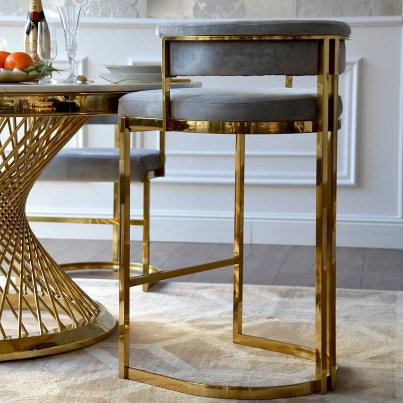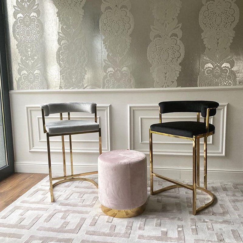 The elegant and modern glamour barstool from the MARCO line is a perfect addition to any dining room, bar or aisle in the kitchen. Thanks to its stable and secure construction it provides a sense of security. The frame is made of extremely high quality stainless steel, which shines in a timeless golden shade. The upholstery of MARCO is a beautiful velvet fabric that is extremely soft to the touch. This material stands out due to its high resistance to various types of damage and abrasion. The barstool from the MARCO line is a perfect complement to any glamour style space, which will gain a unique atmosphere and elegant glitter thanks to this piece of furniture. The dimensions of this piece of furniture (92 cm x 53 cm x 51 cm) allow you to freely place it in any space. We guarantee that our product will catch the eye of all your visitors. This particular barstool comes from our outlet, therefore it has minor scuffs and scratches visible in one of the photos. However, this in no way affects the comfort and convenience when using the barstool.