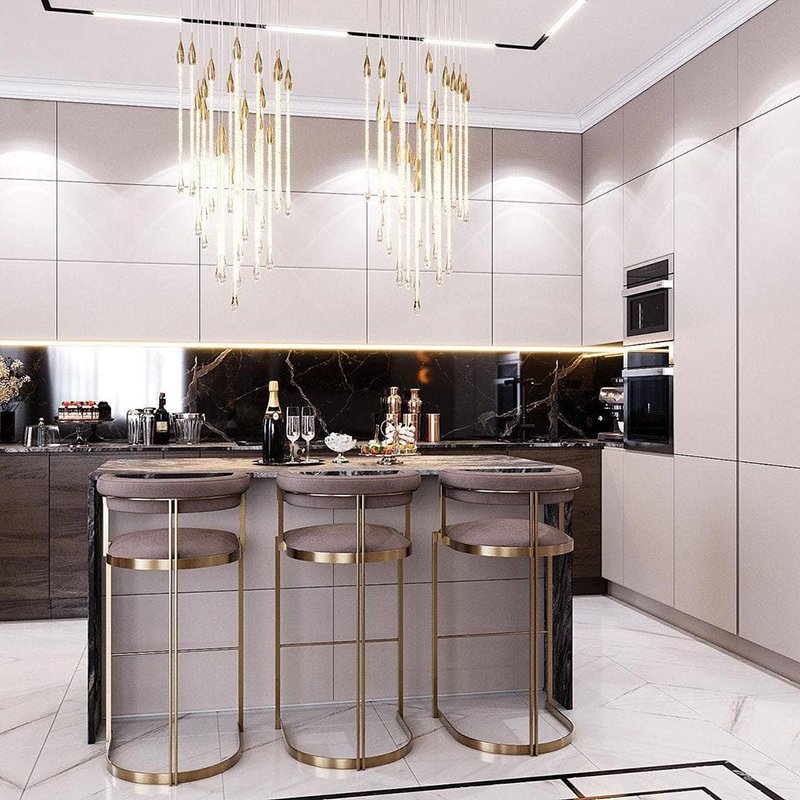 The luxury barstool from the MARCO line available from Primavera Home will fit perfectly into any glamorous dining room or kitchen. You can easily combine it with a tasteful table with golden elements from the ANTONIO line. Such a combination will not only be the height of luxury, but also an extremely practical corner in any room. Glamour-style candlesticks, which will provide a unique atmosphere thanks to the candles they contain, will be a perfect addition to the space. Pots from the LENE BJERRE line with beautiful fresh flowers will also be a great choice. The cosy atmosphere will be enhanced by the extremely soft MAROC carpet.