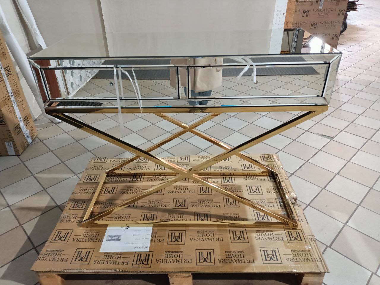 The CHIGACO GOLD mirror console in stunning golden colors is a true synonym of luxury and elegance. It will fit perfectly into both traditional interiors and more modern spaces, decorated in a sublime New York style. It will be perfect as a tasteful addition to the living room, bedroom, elegant corridor or even a fashionable boutique. Thanks to its convenient dimensions (100 cm x 40 cm x 80 cm), it is a piece of furniture with many uses that can be easily arranged even in slightly smaller spaces. What is particularly eye-catching is the original, carefully designed structure of the console. The golden, subtly shimmering base of the furniture in a sophisticated and extremely original shape gives it a very modern expression. Additionally, it is made of the highest quality stainless steel, which ensures durability and stability of the entire structure. However, the perfectly polished glass top and attractively shiny drawers with decorative handles create an extremely elegant effect. The combination of classic gold with tasteful glass creates a whole that cannot be ignored.