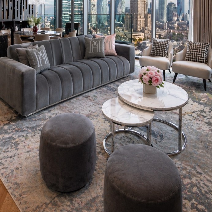 If you need additional space for the lounge area in your home, you can combine the LONDON sofa with a set of armchairs from the same stunning collection. A modern coffee table from the ART DECO line will also work perfectly in this arrangement, as its striking gold base will perfectly match the design of the sofa. In order to add even more glamour and elegance to the room, the arrangement can be complemented with a very tasteful MONACO hanging chandelier, which no one will be able to pass by indifferently.