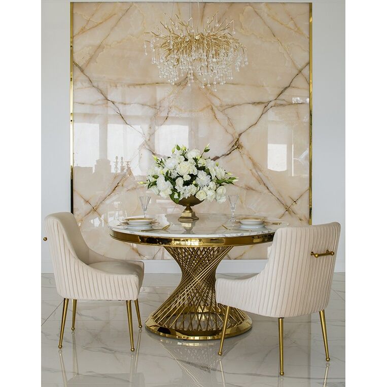 Gold round dining table glamour marble 130 cm