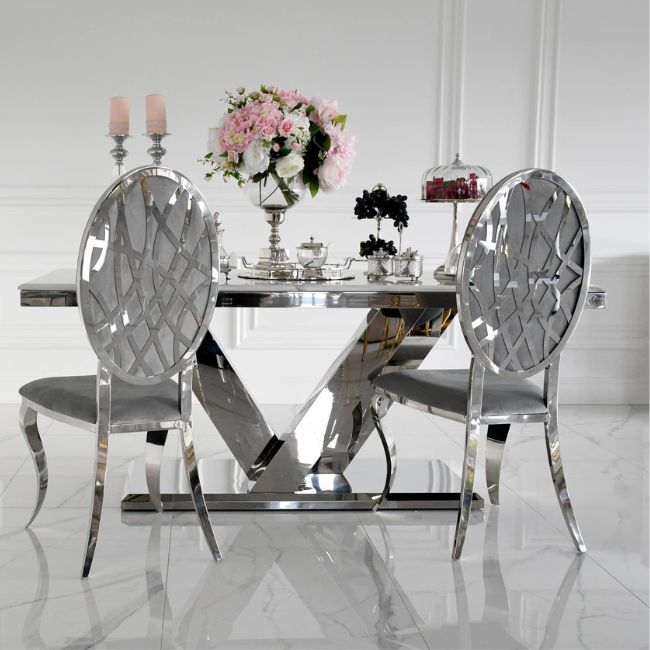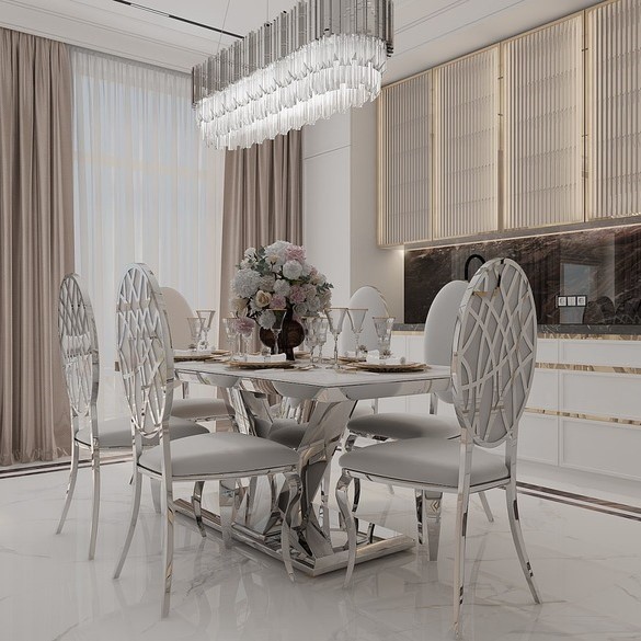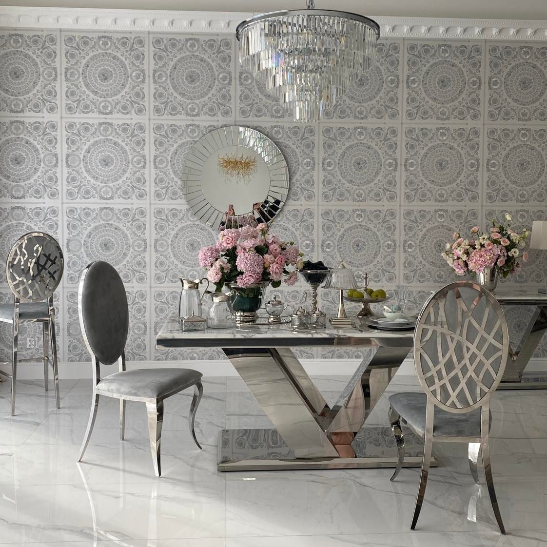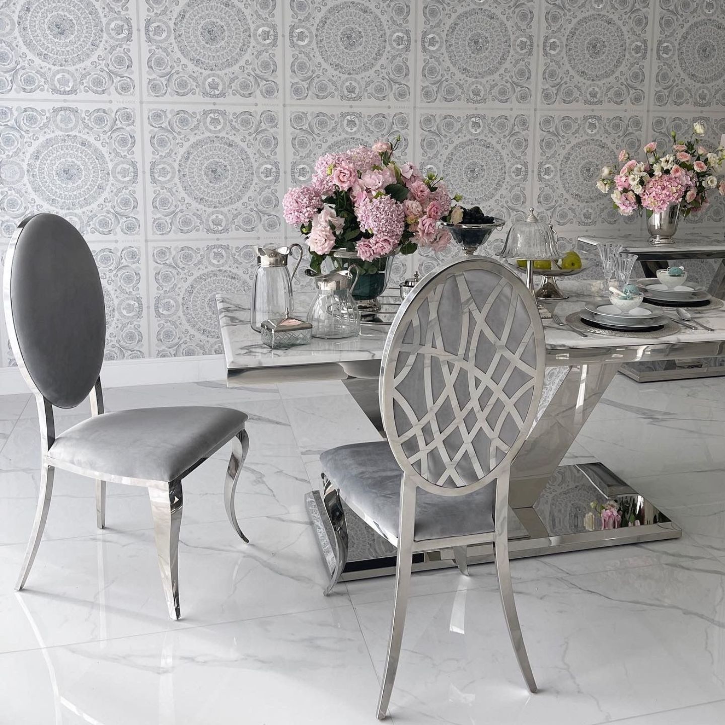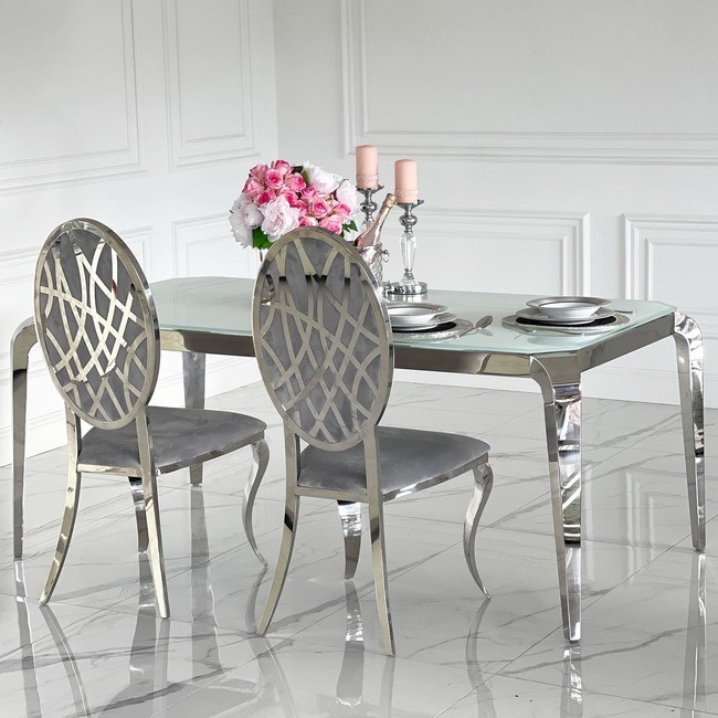 Krzesło glamour AZURO to połączenie nowoczesnego designu z eleganckimi akcentami. Wykonane ze stali, posiada solidną konstrukcję, która zapewnia trwałość i komfort użytkowania. Krzesło jest dostępne w kolorze szarym, który dodaje wnętrzu jadalni subtelności i harmonii. Dodatkowo, srebrne elementy wykończenia nadają mu luksusowego charakteru. Dzięki swojemu wyjątkowemu stylowi, krzesło Azuro doskonale wpasuje się w nowoczesne wnętrza, dodając im ponadczasowej elegancji. To krzesło jest połączeniem stylu i funkcjonalności, idealne zarówno dla osób ceniących eleganckie jadalnie, jak i dla tych, którzy chcą stworzyć wyjątkową atmosferę przy swojej toaletce.