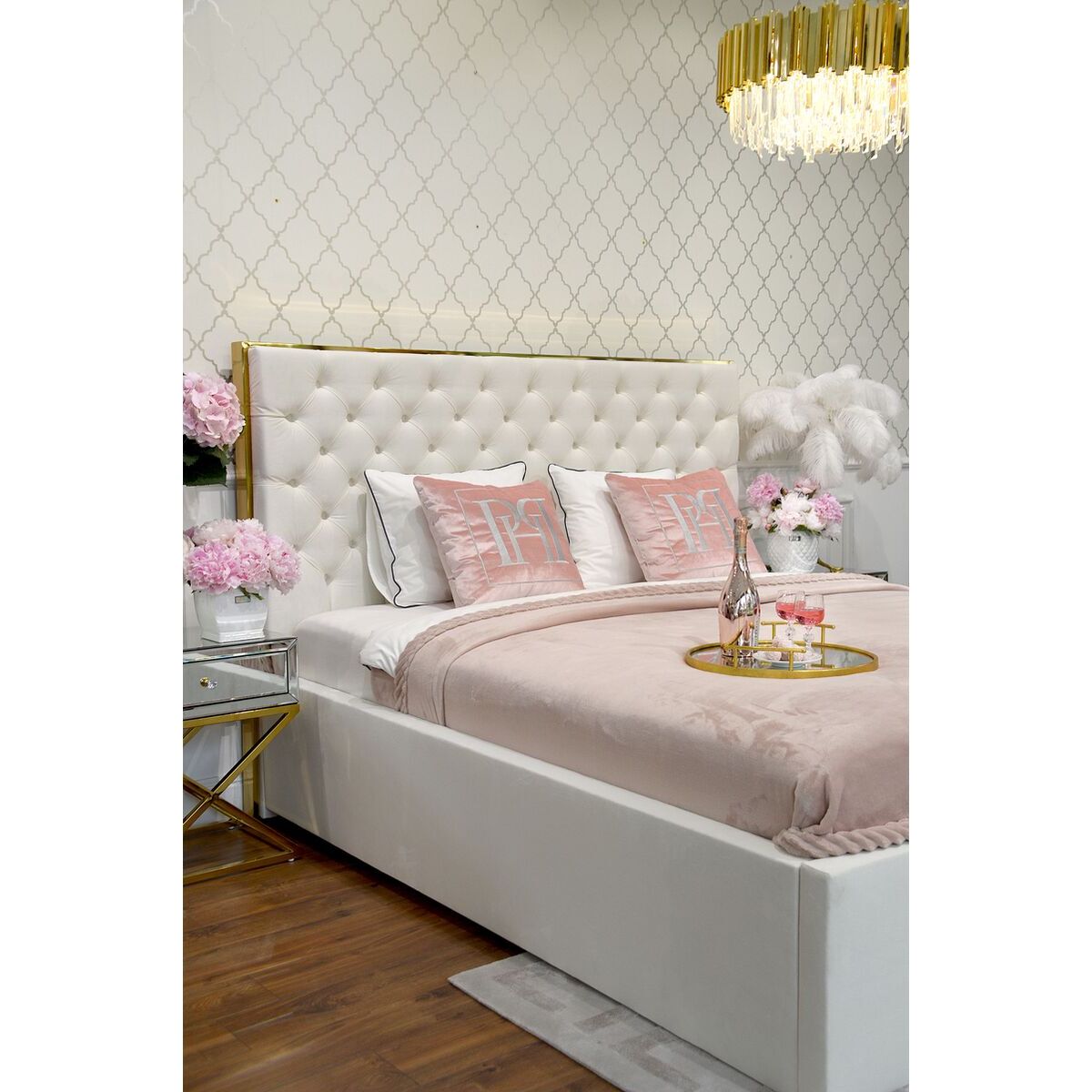 Stylowe, pikowane łóżko glamour SPECTRE GOLD, wykonane z najwyższej jakości drewna, w subtelny sposób łączy w sobie klasyczną elegancję formy i nowoczesny styl wykonania. Elegancki, pikowany zagłówek został wzmocniony obramowaniem ze stali nierdzewnej w złotym kolorze. Złote łóżko glamour może być tapicerowane dowolną tkaniną, według potrzeb klienta. Możliwość indywidualnego doboru kolorystyki, w jakiej zostanie wykonany mebel, w połączeniu z wysokiej klasy materiałami, z jakiego zostało wyprodukowane, sprawia, że jest to wyrób, który zadowoli każdego klienta. To gustowne łóżko podkreśli charakter sypialni w stylu nowojorskim.