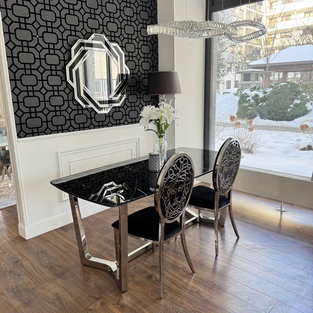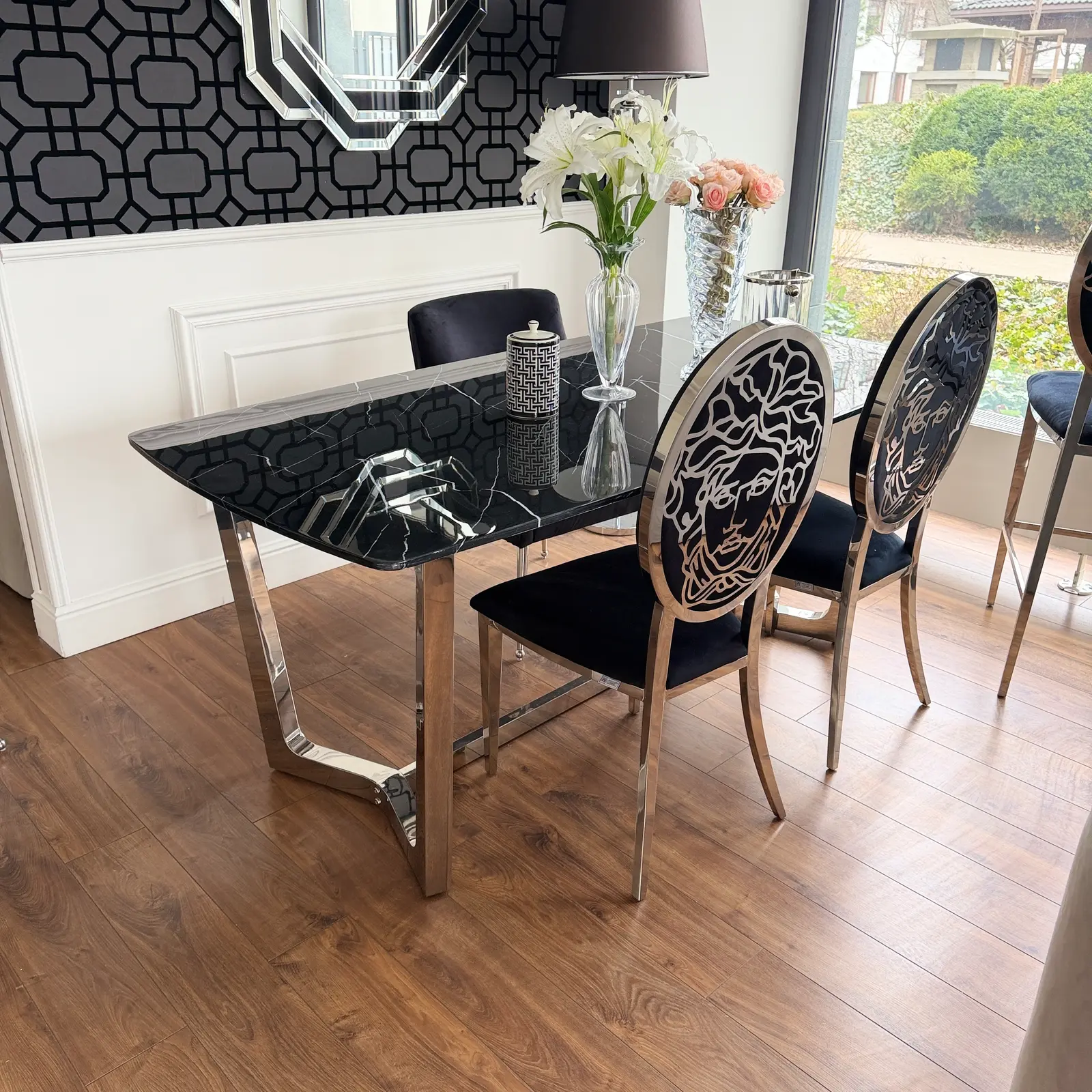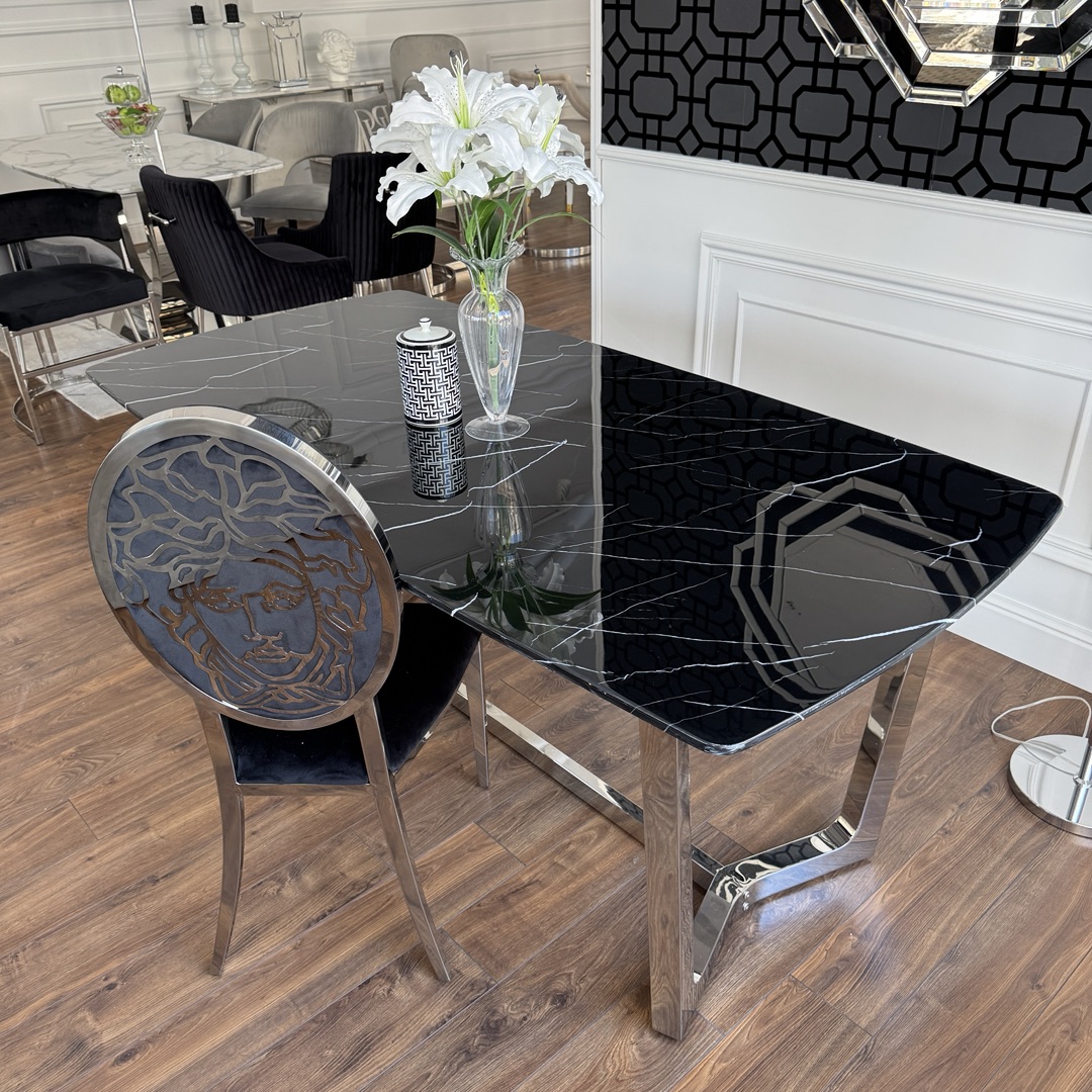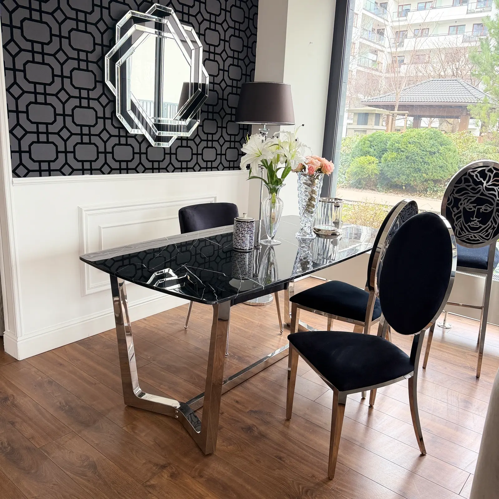 Stół srebrny z marmurowym czarnym blatem, do jadalni, glamour, ekskluzywny KENT