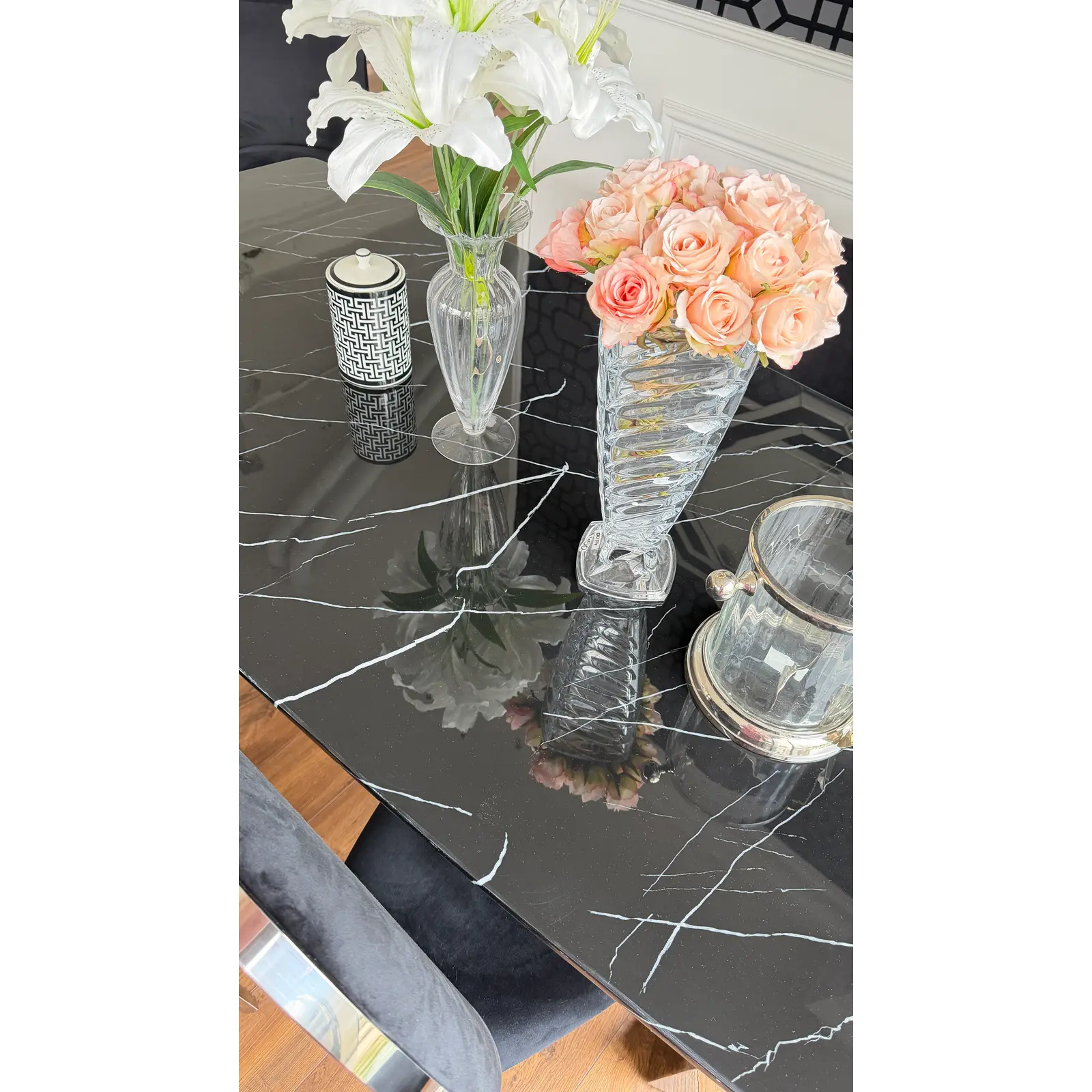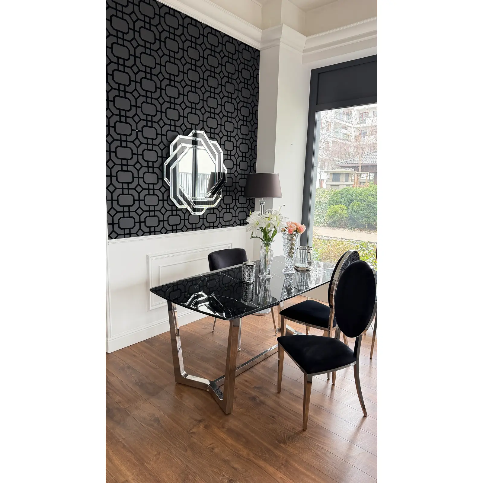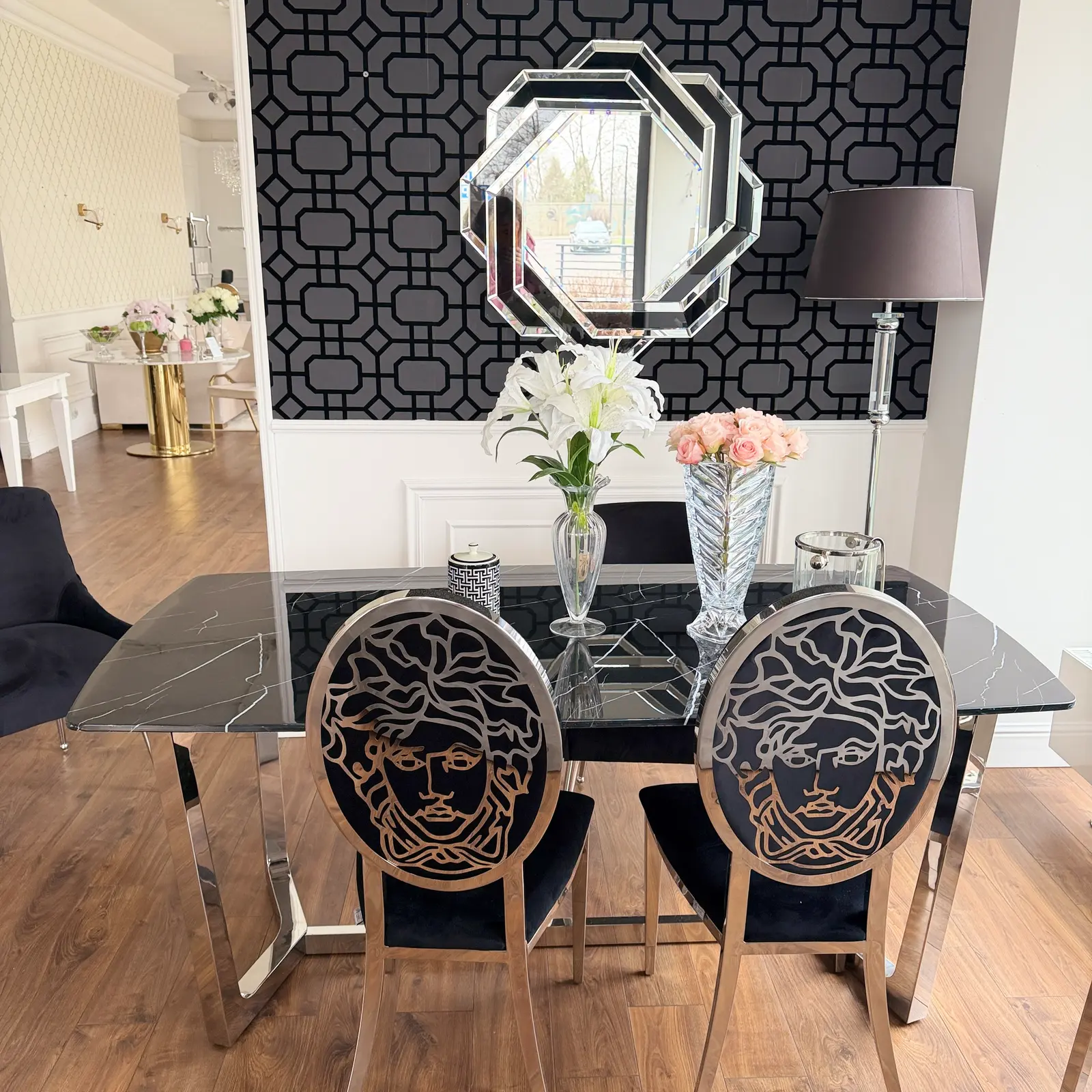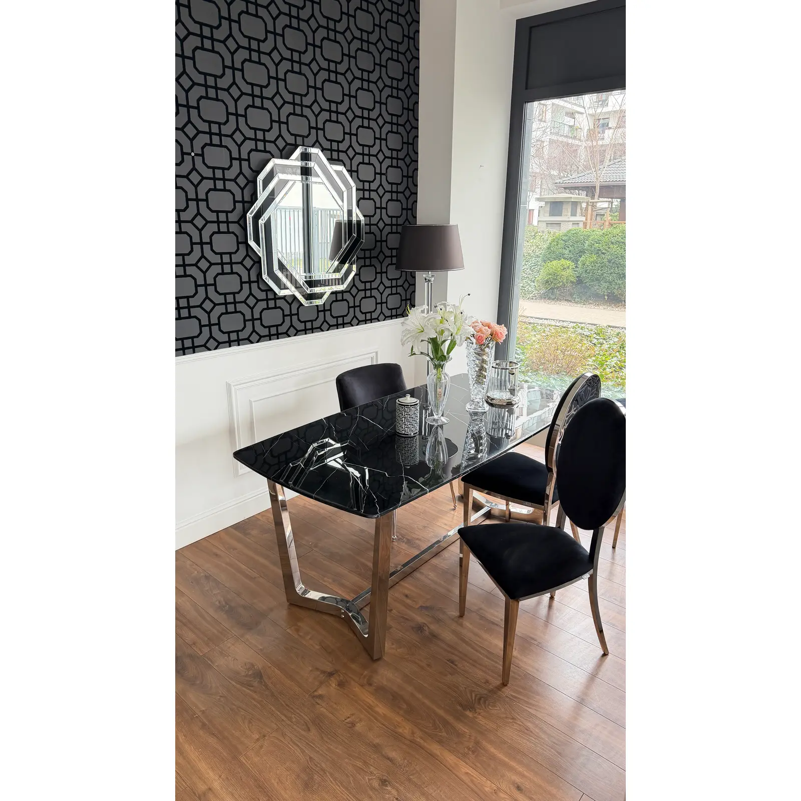 Stół srebrny z marmurowym czarnym blatem, do jadalni, glamour, ekskluzywny KENT