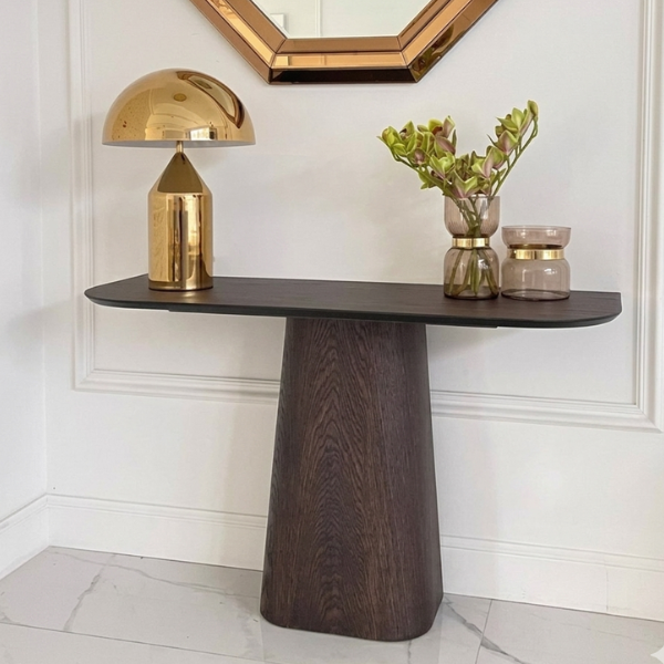 Konsola Modena to mebel o ogromnym potencjale aranżacyjnym. W luksusowym przedpokoju stworzy doskonały duet z dużym lustrem oraz designerską lampą stołową. W salonie może pełnić rolę prestiżowego mebla pomocniczego, idealnego do ekspozycji albumów o sztuce lub kolekcji kryształów. Dzięki swojej minimalistycznej, a zarazem bogatej formie, doskonale komponuje się z naturalnym kamieniem, metalicznymi dodatkami oraz nowoczesnymi tkaninami obiciowymi.
