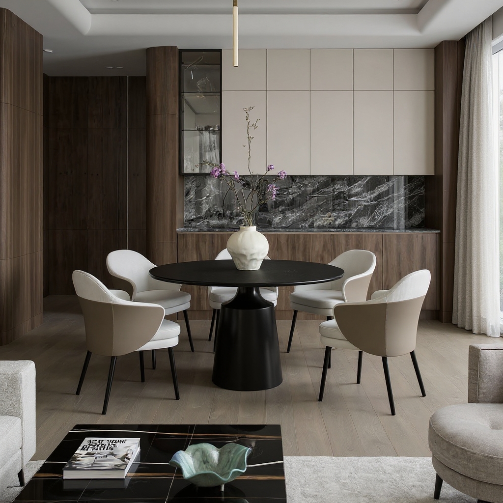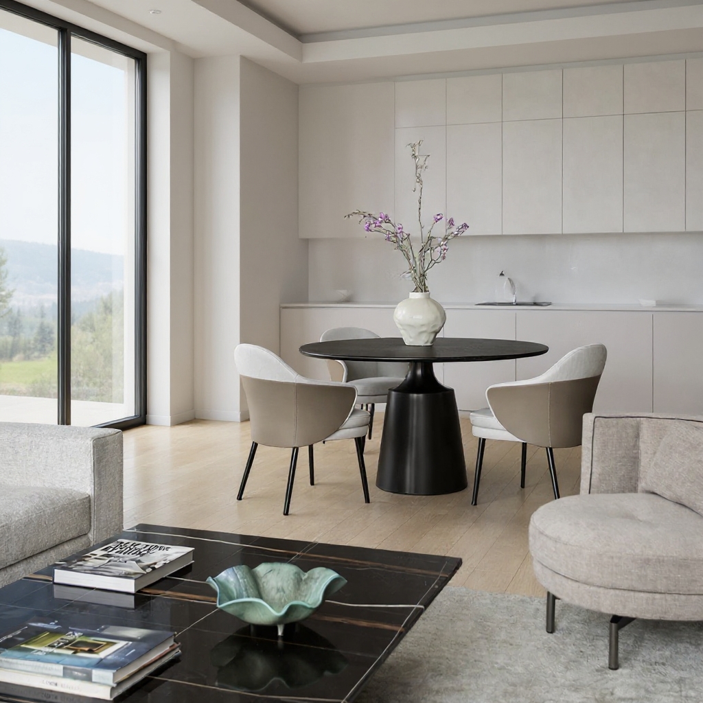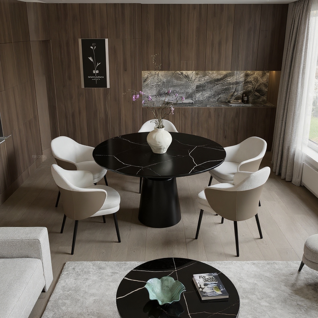 Stół Oslo to kwintesencja współczesnego designu który redefiniuje pojęcie luksusu w sercu domu. Okrągły kształt blatu o średnicy dopasowanej do potrzeb rodziny pozwala na swobodną rozmowę i tworzy intymną atmosferę podczas spotkań. Głęboka czerń kamiennego blatu w połączeniu z precyzyjnie wykonaną podstawą ze stali nierdzewnej nadaje wnętrzu prestiżu oraz nowoczesnego sznytu.