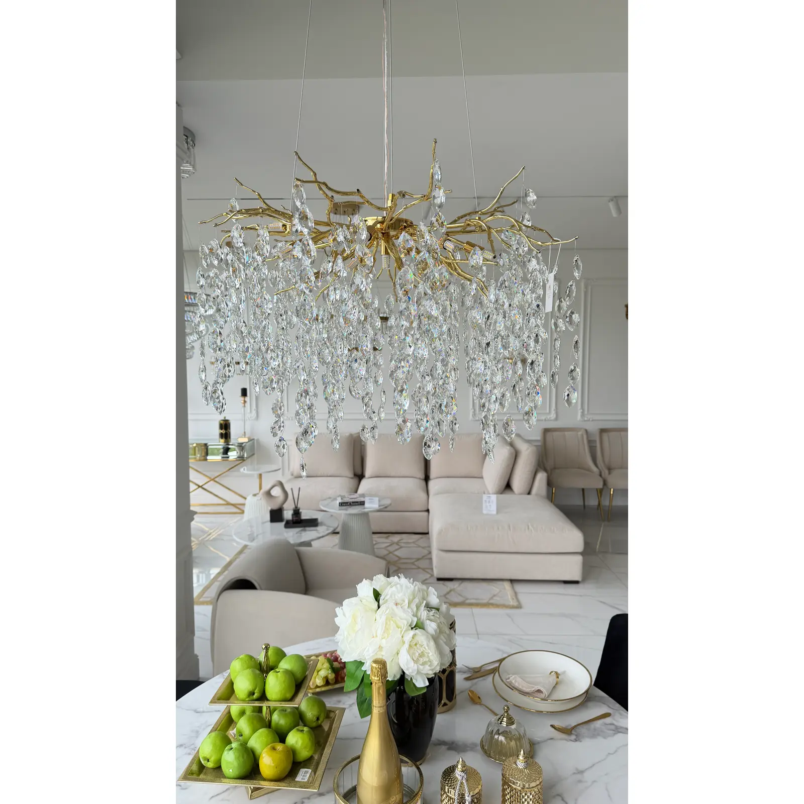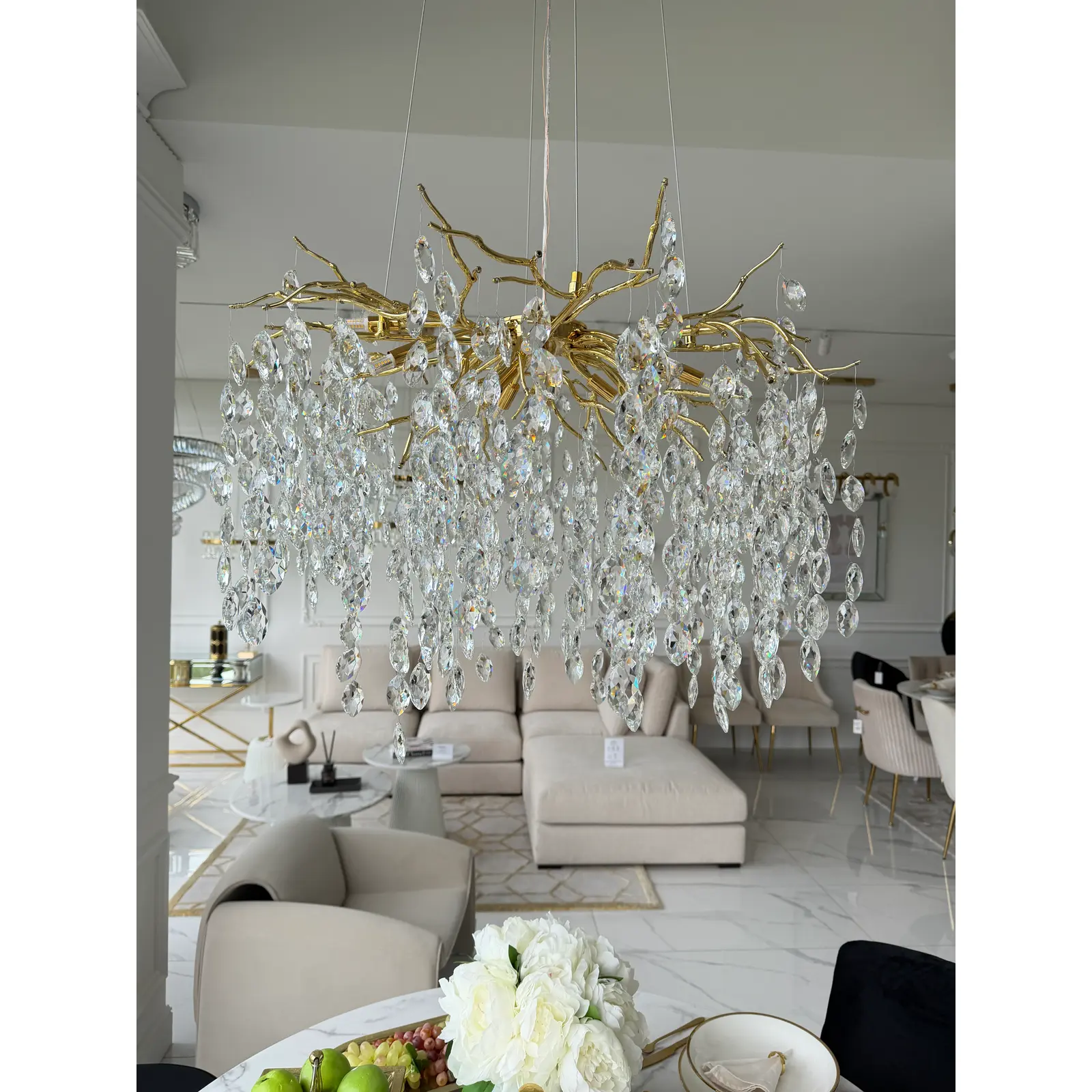Nowoczesny żyrandol kryształowy złoty QUEEN – biżuteria dla Twojego sufitu