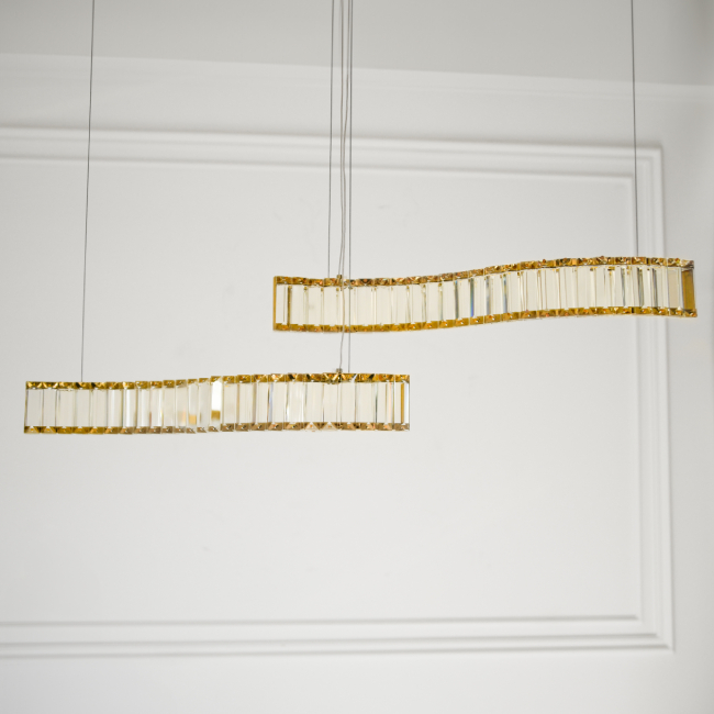 Żyrandol podłużny BLOOM to elegancki i nowoczesny żyrandol, który doskonale nadaje się do umieszczenia nad wyspą w kuchni lub stołem w jadalni.