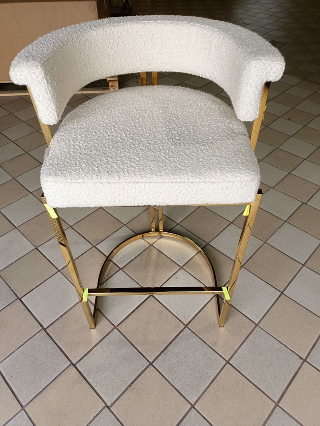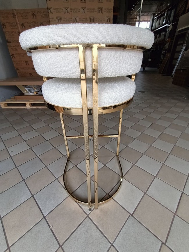 Wnieś do swojej przestrzeni blask i wyrafinowanie z hokerem glamour MARCO w eleganckim złotym kolorze i modnej tkaninie boucle. Ten nowoczesny, tapicerowany hoker to idealne rozwiązanie do jadalni, domowego barku czy stylowej wyspy kuchennej, gdzie stworzy atmosferę luksusu i komfortu.