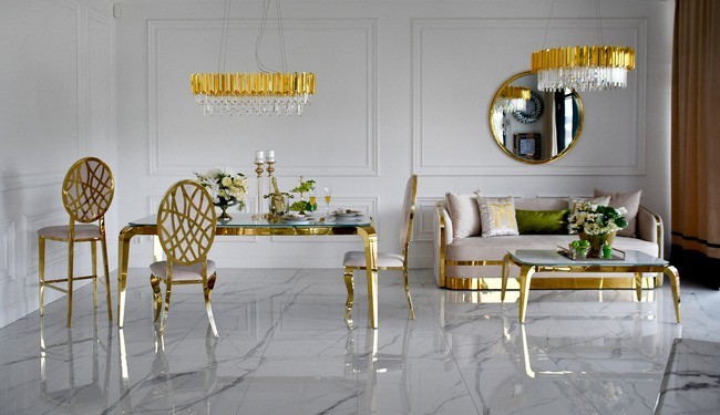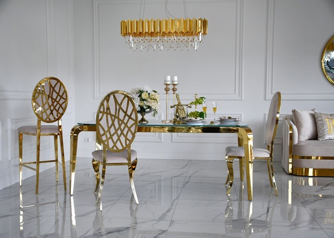 Krzesło glamour AZURO to połączenie nowoczesnego designu z eleganckimi akcentami. Wykonane ze stali, posiada solidną konstrukcję, która zapewnia trwałość i komfort użytkowania. Krzesło jest dostępne w kolorze beżowym, który dodaje wnętrzu jadalni subtelności i harmonii. Dodatkowo, złote elementy wykończenia nadają mu luksusowego charakteru. Dzięki swojemu wyjątkowemu stylowi, krzesło Azuro doskonale wpasuje się w nowoczesne wnętrza, dodając im ponadczasowej elegancji. To krzesło jest połączeniem stylu i funkcjonalności, idealne zarówno dla osób ceniących eleganckie jadalnie, jak i dla tych, którzy chcą stworzyć wyjątkową atmosferę przy swojej toaletce.