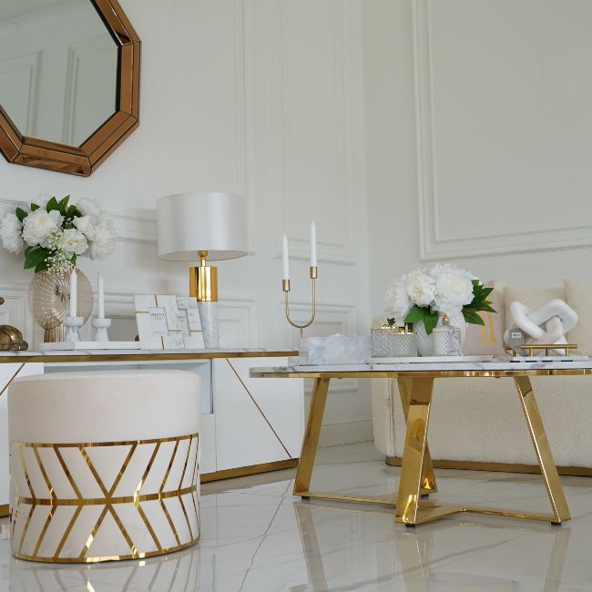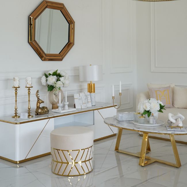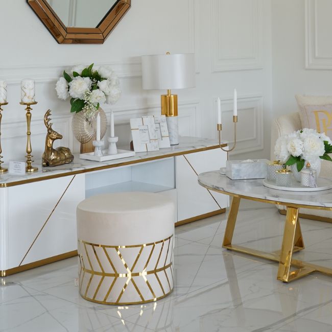 Luksusowa pufa ze złotymi wzorami to wszechstronny dodatek do każdego pomieszczenia. Może służyć jako stylowy podnóżek glamour, komfortowe dodatkowe siedzisko dla gości w salonie, elegancki akcent w sypialni lub przedpokoju, a także jako podstawa dla ulubionej tacy z napojami. Inwestując w meble premium z kolekcji Primavera Home, zyskujesz gwarancję najwyższej jakości wykonania i niepowtarzalnego designu, który przez lata będzie cieszył oko i podnosił prestiż Twojego domu.