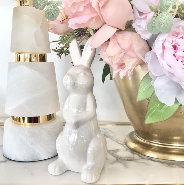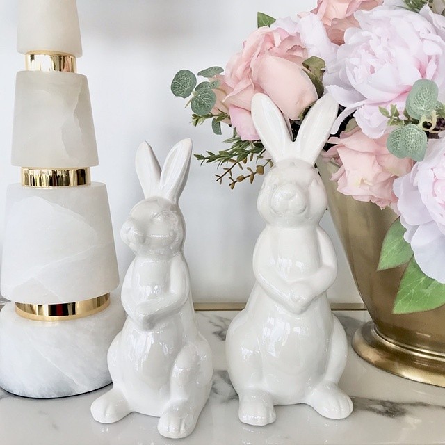 Dekoracja na stół, królik ceramiczny mały, perłowy, stojący, glamour, wielkanocny
