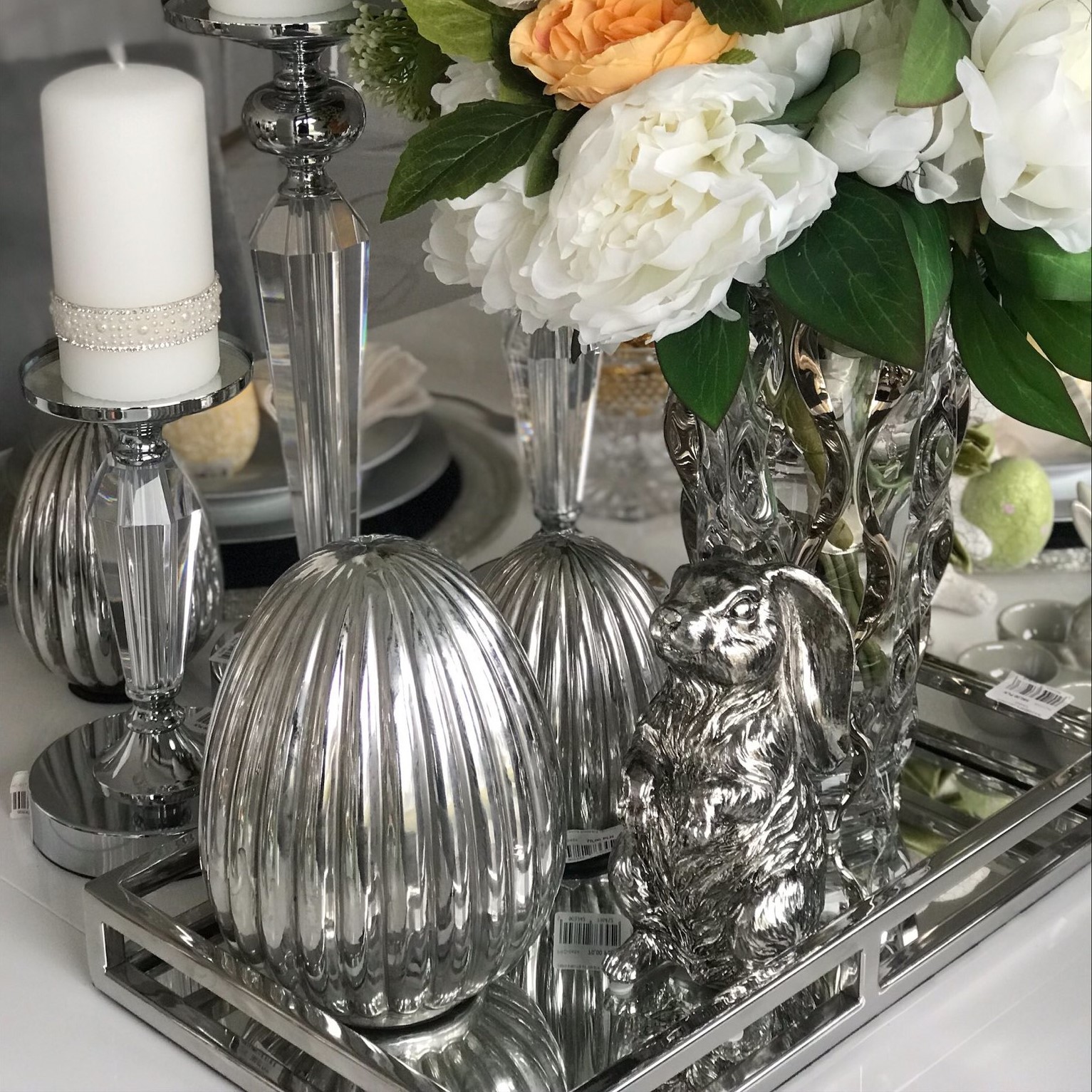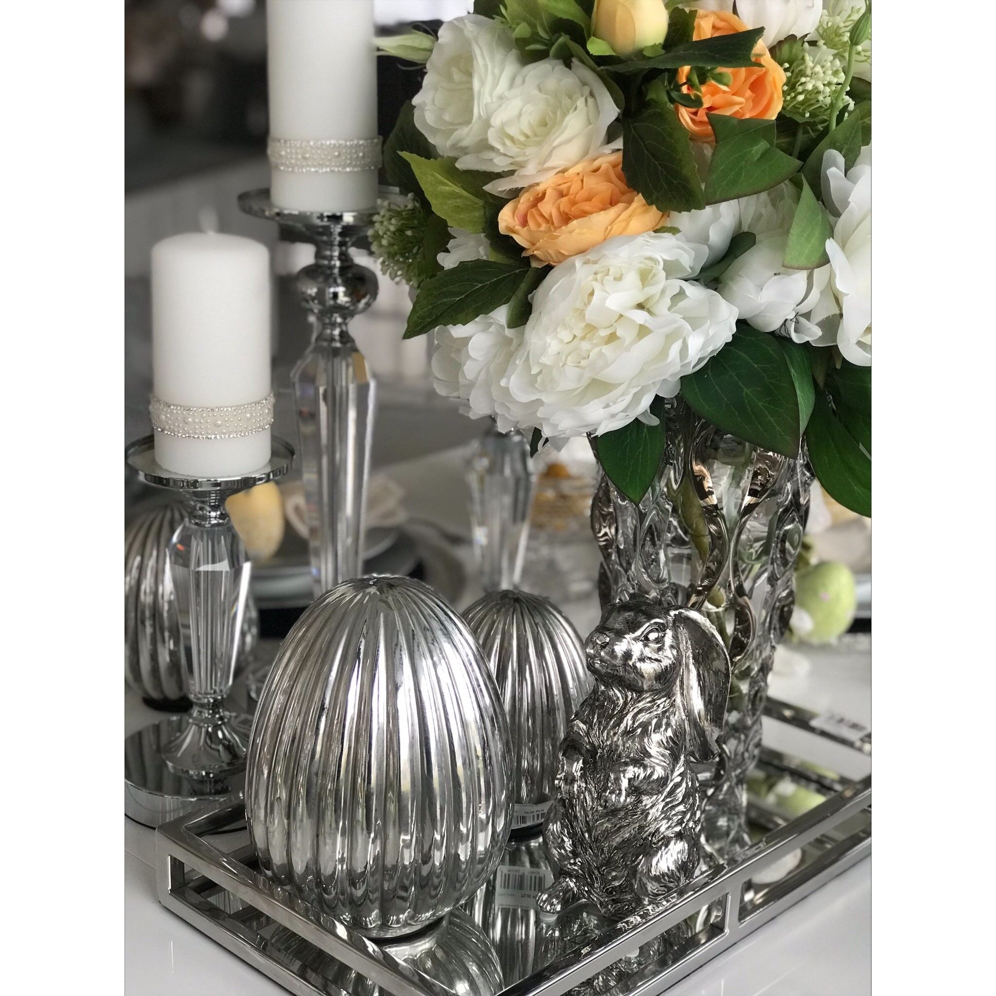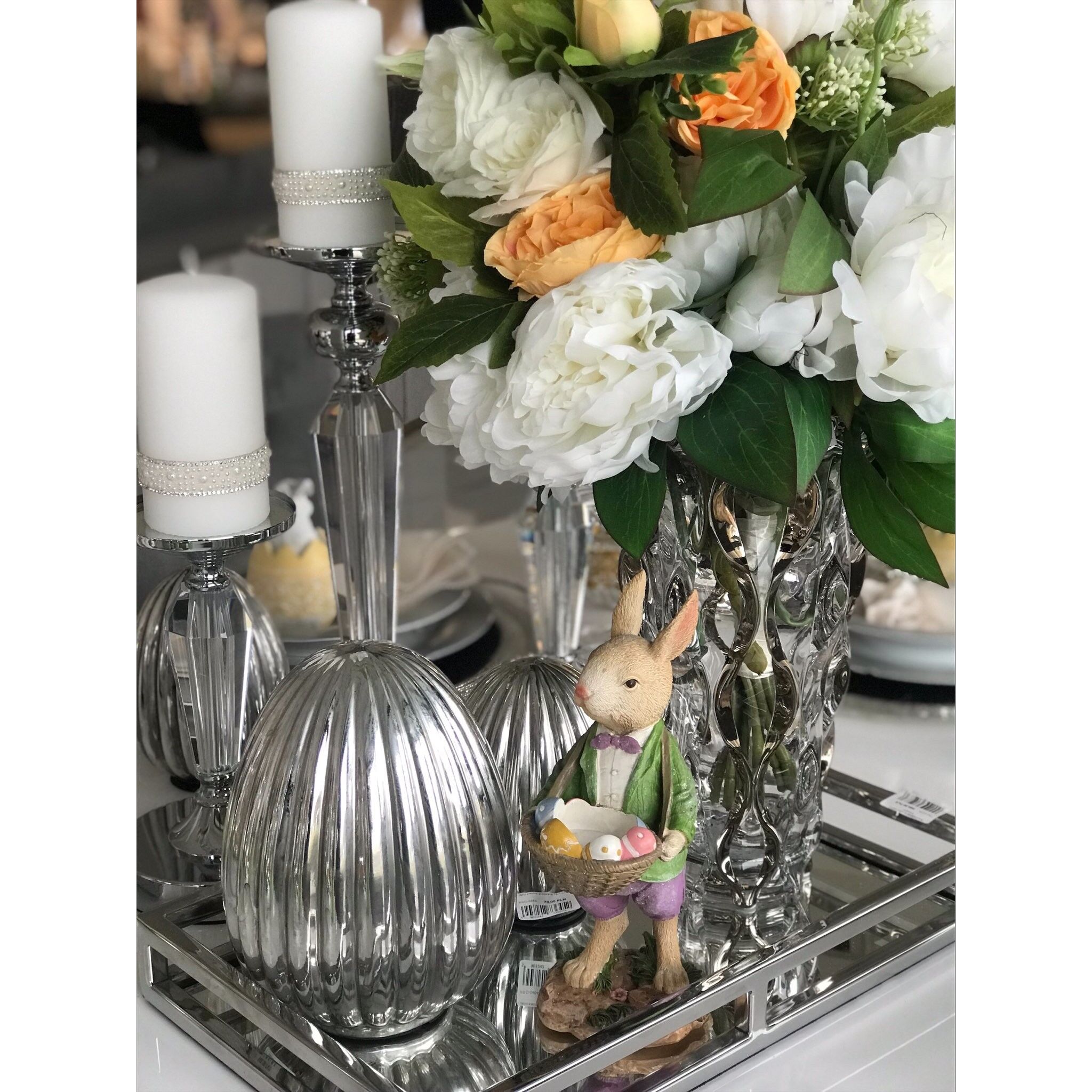 Srebrne jajko dekoracyjne wielkanocne to elegancko wykonany element ozdobny, który idealnie pasuje do świątecznej atmosfery. Jego metaliczny połysk nadaje mu wyjątkowego uroku, a zdobienia sprawiają, że jest niezwykle efektowny. Jajko może być umieszczone na stole jako ozdoba lub będzie idealnym prezentem. Jego minimalistyczny, ale stylowy design sprawia, że doskonale komponuje się z innymi elementami wystroju świątecznego. Srebrne jajko dekoracyjne to idealny dodatek, który podkreśli wyjątkowość i elegancję wnętrza podczas świąt.